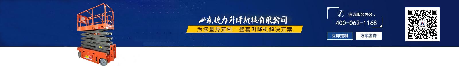 山东捷力升降机械有限公司是国内专业生产移动式升降机,固定式升降机,导轨式升降机,车载式升降机,铝合金升降机,登车桥和高空作业平台的厂家之一。公司重点发展液压升降平台、升降机研制、开发、和制造。我们生产设备精良,工艺先进合理,检测手段齐全,技术力量雄厚;升降平台、升降机产品共有八大系列、六十多个品种,并主要承接各种非标产品的设计和制作,规格齐全,质量保证,所生产的升降机、升降平台符合国家行业标准,广泛用于建筑业室内外装修、车间、车站码头、超市、大厅等高空作业和工业生产流水线及各楼层间的上下载货;产品销往全国各地,受到广大用户的好评......
